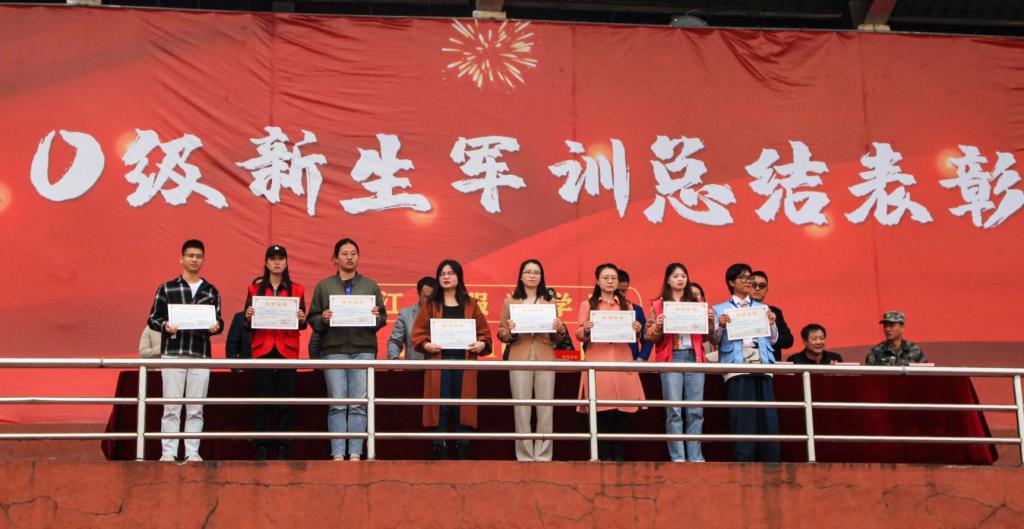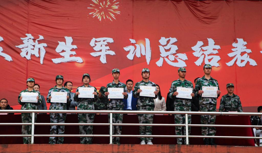 党委学工部(处)长胡伟宣读了《关于表彰2020级军训工作“先进单位”“先进个人”和“军训标兵”的决定》。授予服装设计学院和商学院为“2020级新生军训先进单位”荣誉称号;授予服装设计学院黄禄彤等18名同志为“2020级新生军训先进个人”荣誉称号;授予服装设计学院葛文琦等546名同学为“2020级新生军训标兵”荣誉称号。与会领导为获奖代表颁了奖。