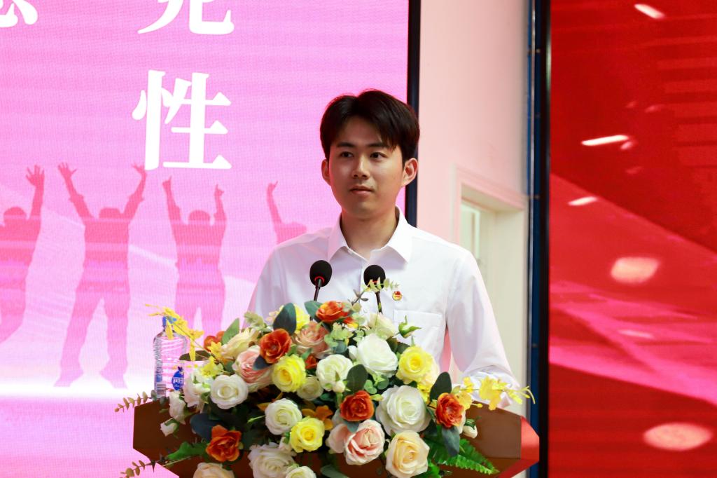 校党委副书记唐新强向全校青年致以真诚问候,对获得表彰的先进集体和优秀个人表示热烈祝贺,高度赞扬广大青年师生在校园疫情防控、“三下乡”志愿服务活动、校园文化建设、科创竞赛等重点工作中,在建设特色鲜明的高水平应用型大学的征程中,勇于担当,勤于奉献,创造了一项又一项佳绩,特别是我校共青团被评为全省高校共青团先进单位,成绩来之不易。并希望江服学子牢记习近平总书记对青年的谆谆寄语,不负时代、不负韶华,在青春的赛道上奋力奔跑。