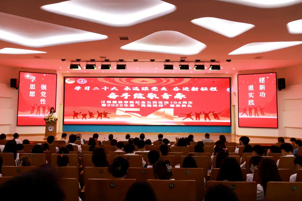 党委组织部部长陈翠娥宣读《共青团江西省委办公室关于2022年度全省高校共青团工作评议情况的通报》及全省、全市两红两优我校获评情况;党委学生工作部部长邓良峰宣读《关于表彰2022年度全校“优秀共青团员”、“优秀共青团干部”、“十佳团支部书记”、“优秀团务工作者”、“五四红旗团委(团支部)”的决定》。与会领导为获奖先进集体及个人进行了颁奖。
