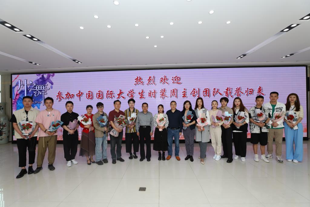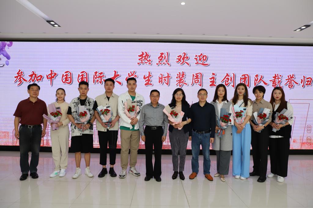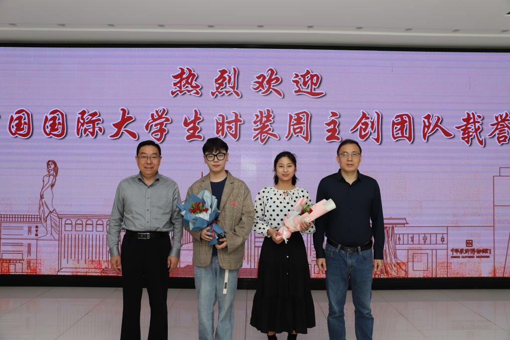 新闻中心讯 5月24日上午,校长薛家宝、党委书记陈付龙在行政楼亲切接见了刚刚从2021年中国国际大学生时装周上喜获佳绩载誉归来的师生。校领导亲自为他们送上鲜花,对以常务副校长徐炜为领队的时装周参赛团队取得的优异成绩表示热烈的祝贺,并对参赛师生和备赛团队的辛苦付出表示衷心感谢。薛家宝、陈付龙两位校领导希望全校各部门以此为契机,形成合力,加大人才引进,以开拓创新、积极向上的精神,以赛促教,以赛促学,切实提高教育教学水平,不断为学校推进“双一流”建设,推动学校学科发展奉献力量。