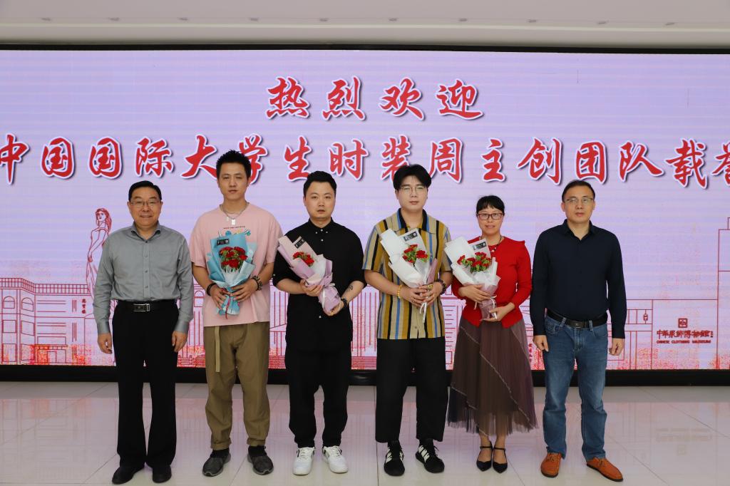 在接见现场,时装周的展演主创团队代表向徐炜副校长献了花,感谢徐炜副校长与参演、参赛团队一起齐心协力、努力拼搏,经历各种挑战,还利用各种假期组织、邀请相关专家对参赛选手进行培训、指导,并特别感谢八年来一如既往对中国国际大学生时装周工作的组织和指导。