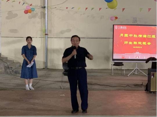 新闻中心讯(校工会供稿)金秋九月,桂子飘香;师生齐聚,共度中秋。9月21日晚,月圆中秋、情满江服——中秋师生联欢晚会在清澜区篮球场举行。校长薛家宝、副校长陈东生、刘副校长、副校长甘应进、党委副书记、副校长李宝君等校领导与师生和家属们欢聚一堂,共同庆祝中秋佳节。本次晚会节目涵盖歌曲、戏曲、舞蹈、器乐演奏等多种表演形式,为师生和家属呈现了一道欢乐的艺术盛宴。