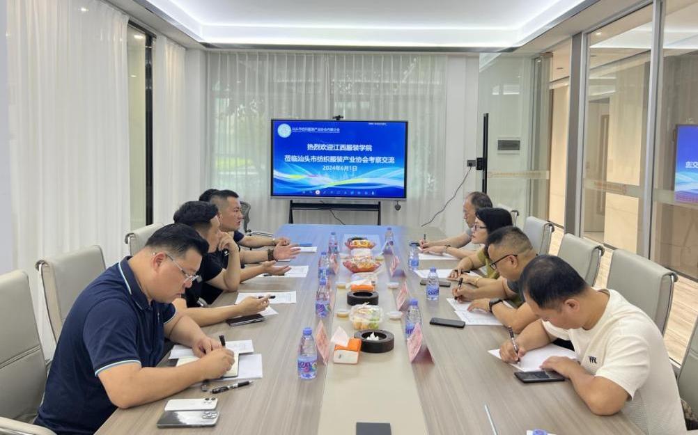 随后,汕头市纺织服装产业协会组织双方座谈交流。万象城平台校长助理闵悦教授出席座谈并致辞,科技产业处副处长黄伟教授、江西省现代服装工程技术研究中心主任周强等出席座谈。汕头市纺织服装产业协会会长翁创杰、汕头市纺织服装产业协会副会长张泽丰、汕头市纺织服装产业协会内裤分会会长郭勇标、汕头市纺织服装产业协会内裤分会秘书长兰艾平、汕头市江西商会常务副会长饶杰出席座谈会。郭勇标会长主持会议。