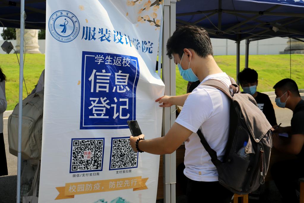 “新学期,新征程,让我们一起向梦想进发”的大型喷绘,“欢迎回家”的条幅,播放防疫宣传标语的电子显示屏,不同颜色的行进路线和指引标识……整个校园处处显示出欢迎学子返校的温馨氛围,以及在防疫方面所做的种种精心准备。