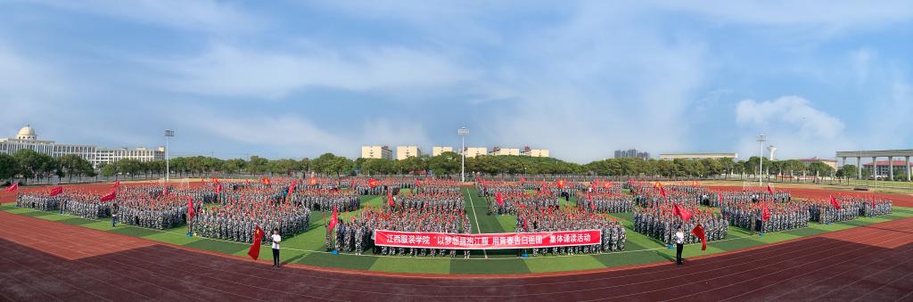 参与活动的新生用肺腑之声作《青春告白》,“我们江服学子,以青春的名义,向伟大的党,伟大的祖国,伟大的时代深情告白、庄严宣誓:新思想,我们学深悟透;新时代,我们重任在肩;新征程,我们昂扬奋进;新使命,我们勇于担当,坚定‘四个自信’,树牢‘四个意识’,做好‘两个维护’,誓当‘中华脊梁’。伟大的党,我们永远跟您走!伟大的祖国,我们永远热爱您!伟大的时代,我们永远向前进!”