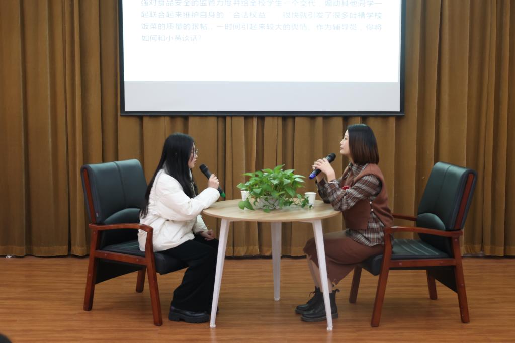 作为学校辅导员队伍建设中的一项专项赛事,辅导员素质能力大赛历时一个多月,分为初赛、复赛、决赛三个阶段,设置理论知识测试、案例研讨、谈心谈话等环节。经过初赛和复赛的激烈角逐,最终共有12名选手进入决赛(谈心谈话环节)。