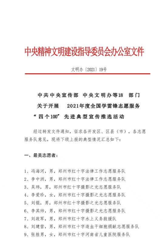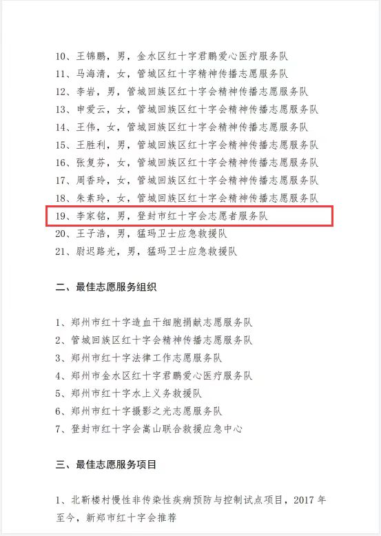2021年抗洪救灾中被河南省郑州市红十字会评为“优秀志愿者”