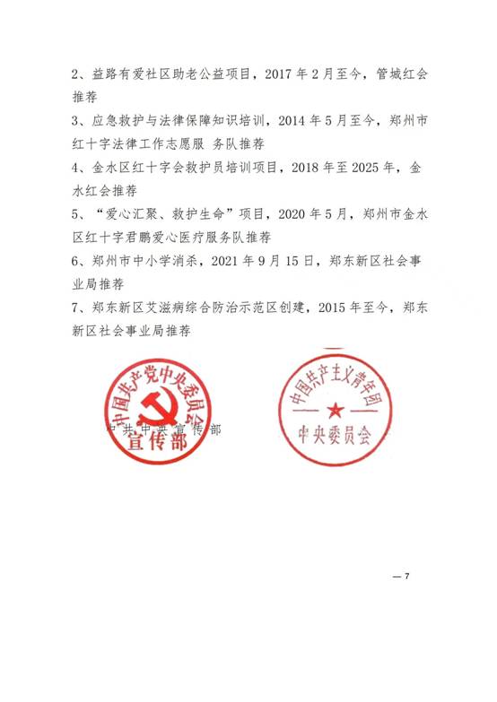 2021年抗洪救灾中被郑州市登封市红十字特授予“先进个人”荣誉称号
