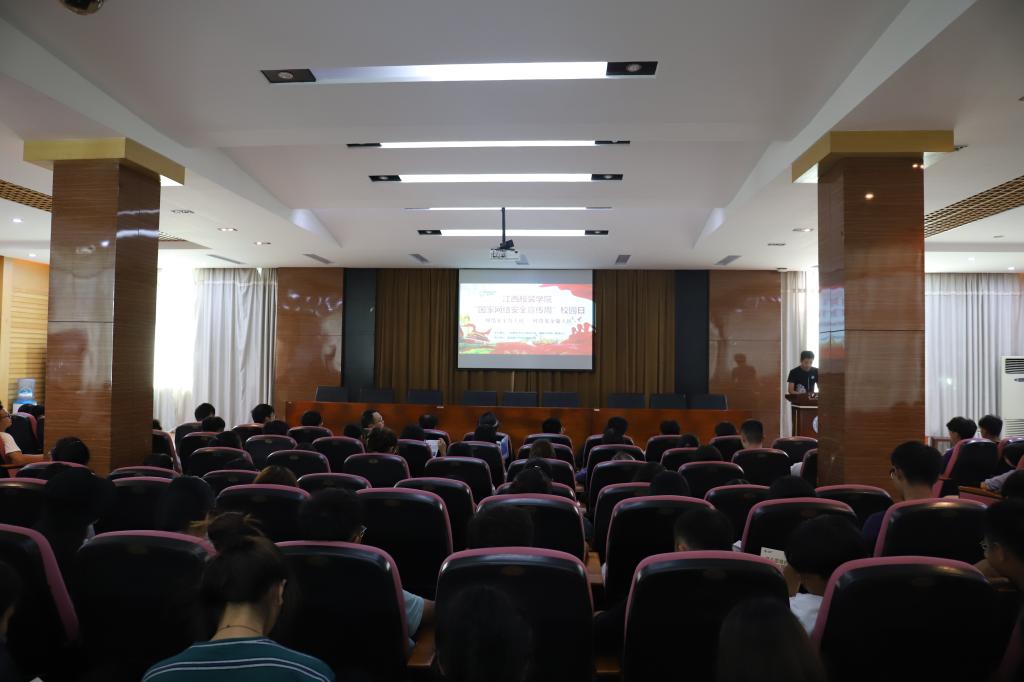 服装报讯(文/虞谦 摄影/万强)9月16日--9月22日是国家网络安全宣传周,为了进一步提高我校师生网络安全意识,增强网络安全自我保护能力,9月18日下午,由校党委宣传部、网络与信息化管理中心主办的“国家网络安全宣传周”校园日活动在行政楼一楼报告厅举行。活动邀请了深信服科技有限公司网络安全顾问为我校师生进行网络安全主题宣讲。校长助理易城、党委宣传部部长彭波、各学院师生近200人参加了活动。