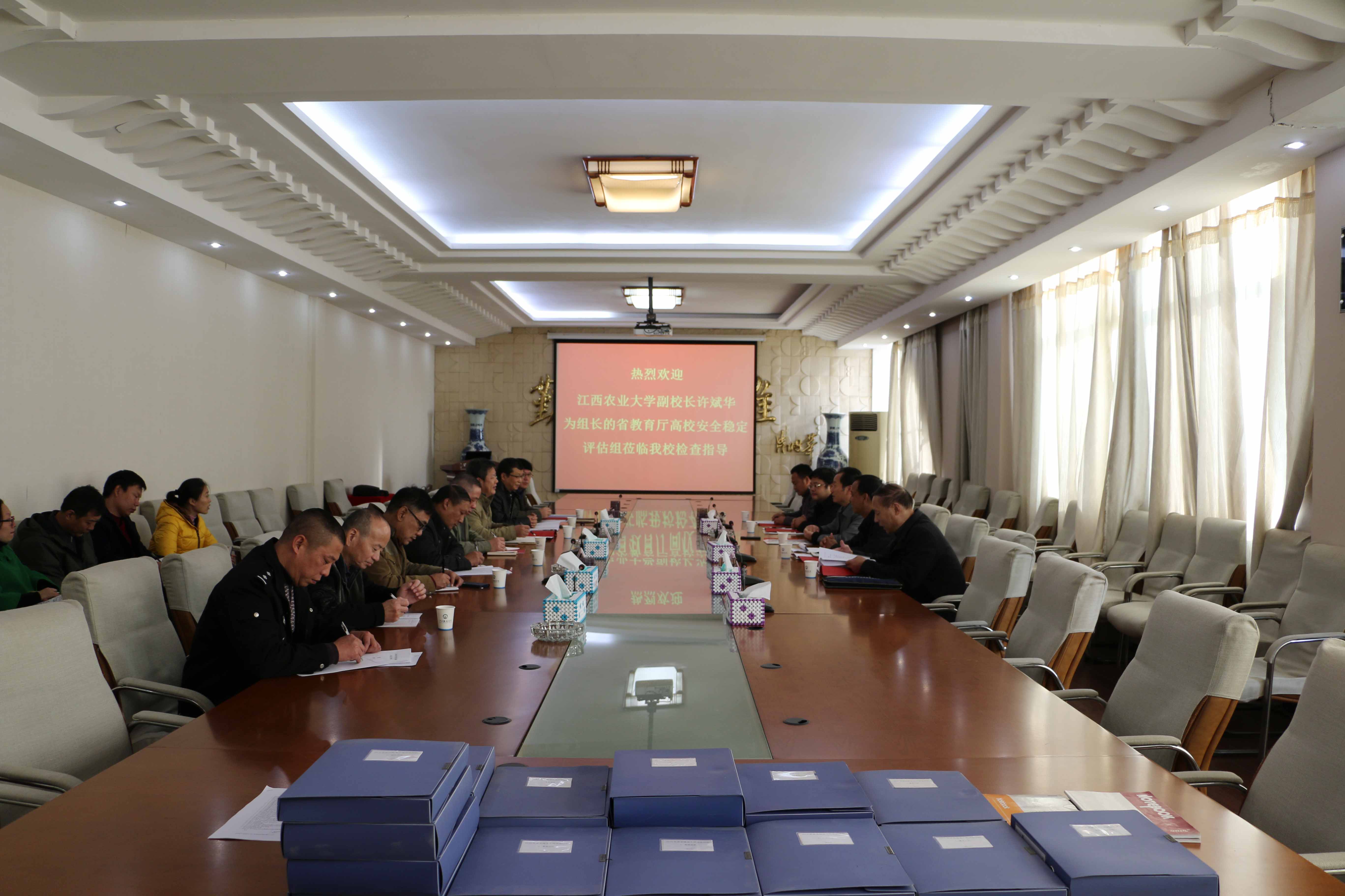 服装报讯(万强)11月10日下午,以江西农业大学副校长许斌华为组长的省教育厅高校安全稳定工作评估组一行5人莅临我校,对我校2016年安全稳定工作进行考评。我校党委书记王建元、校长陈万龙、党委副书记徐红先、党委副书记高建国及相关单位负责人参加了评估汇报会,会议由党委书记王建元主持。