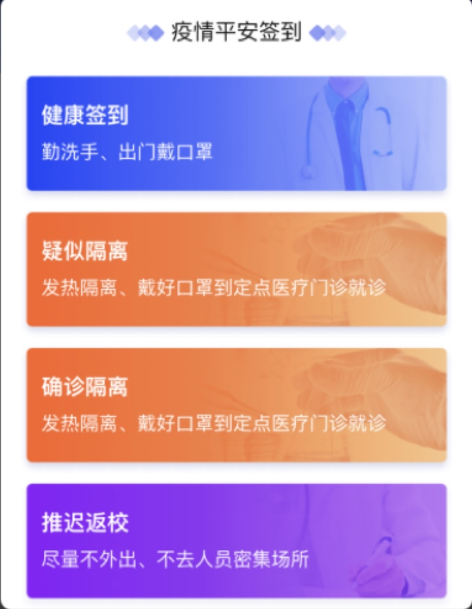 织密战“疫”堡垒之网,切实落实防控工作。党旗所指就是团旗所向。万象城平台团委迅速行动,充分利用大数据进行科学防疫。一是利用疫情联防联控平台掌握学生动态数据。2月10日,万象城平台开通了“疫情联防联控平台”,依托信息化平台报送学生及教师的每日个人健康状况,进一步提高信息报送的准确性和效率,便于学校和各学院掌握学生动态数据,有效预防和控制新冠肺炎疫情;二是巧用APP+“三级联动”模式有序开展团学工作。疫情防控期间,校团委、学生会、艺术团、社团联合会等各级学生组织骨干在团委书记的带领下,每日在钉钉APP进行团学工作打卡,并通过腾讯会议APP开展工作部署。再由“校团委—校学生会—院学生会"环环相扣,保证信息能准确传达和落实,将工作进行宏观梳理和具体分工,向下逐级传达,以确保工作能高效率、高质量地展开。