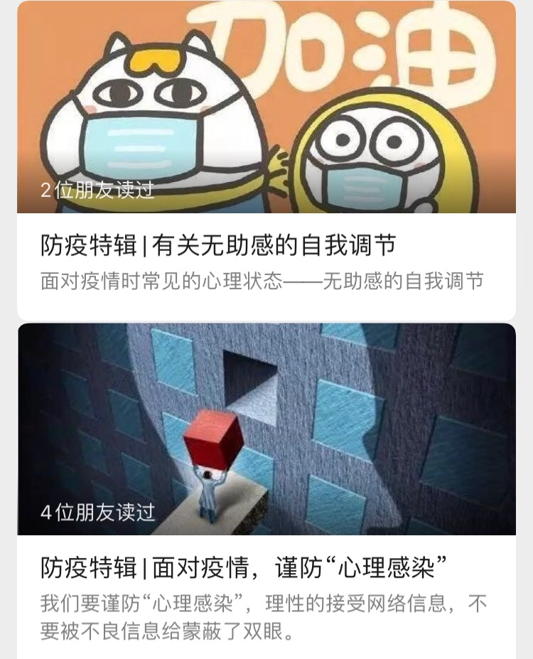 坚守防疫宣传阵地,架起抗“疫”连心桥梁。疫情发生以来,各级团组织充分利用微信、微博、QQ空间等网络新媒体平台,开设疫情防控宣传专栏,围绕疫情动态信息、防控知识科普、卫生行为习惯养成等方面开展形式多样的宣传教育,引导青年学生正确认识疫情形势,普及防疫知识,提高学生警惕。截止目前,团委公众号累计刊发29篇文章,江服青年公众号累计刊发21篇文章,累计阅读量13000+。广大青年学生还通过摄影、视频、海报、手抄报、书画作品等形式宣传疫情防控知识,传递信心和美好祝福,倡导健康文明生活方式,向坚守一线的逆行者表达敬意。