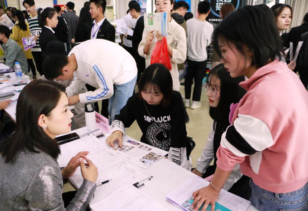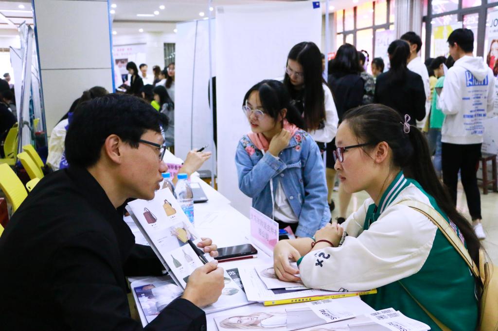 服装报讯(记者/刘雪晶 左文欣 黄海龙 摄影/丁继伟)10月22日下午,我校第六届“石狮日”专场招聘会在思贤楼举行。超群、乌木马、琪多姿、七匹狼、赢家等60家知名企业为我校2019届毕业生带来了研发部经理、设计总监、品管总监、营销总监、服装设计助理、电子商务等多个岗位,近千名毕业生们积极踊跃的参加应聘。