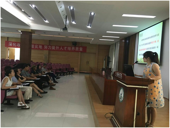 试讲会开始前,创业学院院长曹华介绍了《创新创业基础》课程开设情况,并宣读了试讲会的规则。她希望全体教师珍惜交流机会,抓住学习机遇,努力提升自身能力,并进一步强化岗位意识,为学校创新创业教育改革发展作出贡献。