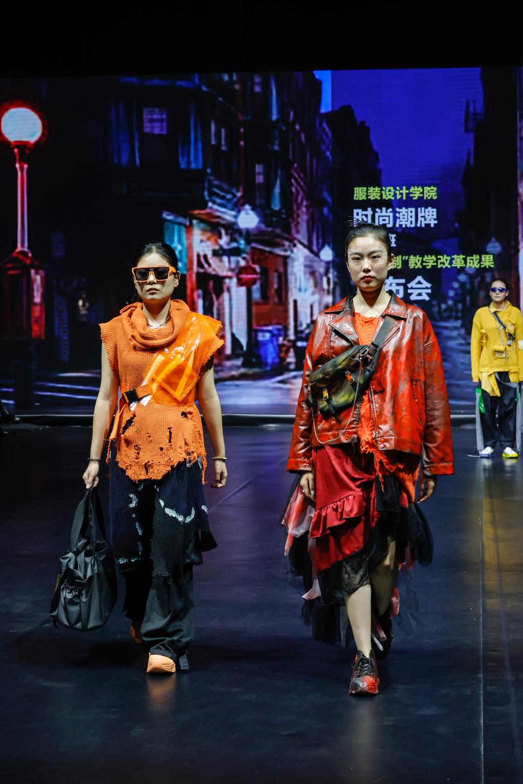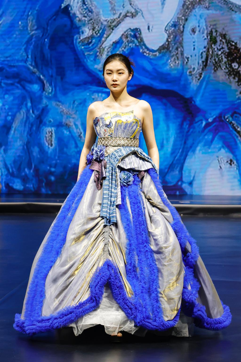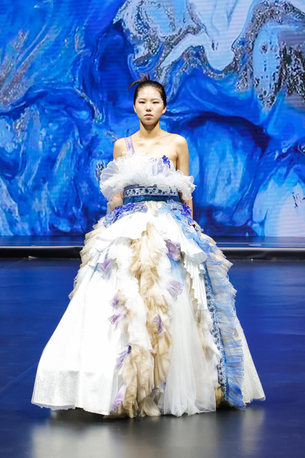 据悉,成果展以服装动态秀为主,辅以静态作品展示。此次产教融合项目教学成果展在400余名学生、20名企业导师的共同努力下,通过第一学期设计稿的绘制、纸样的确定,以及本学期成衣的制作,筛选出服装设计作品成衣约300余件及首饰、箱包、鞋子等产品参加教学成果展。本次参与成果展的项目有马克·蝶丽奥那婚纱礼服项目、赫利童装项目、卡私顿高定项目、三维潮牌项目、波司登(羽绒服)项目、新中装高定项目、武学伟&武学凯伯仲(羽绒服)项目、CHEN1988女装项目、品牌管理等项目。