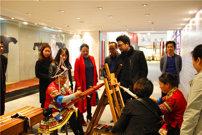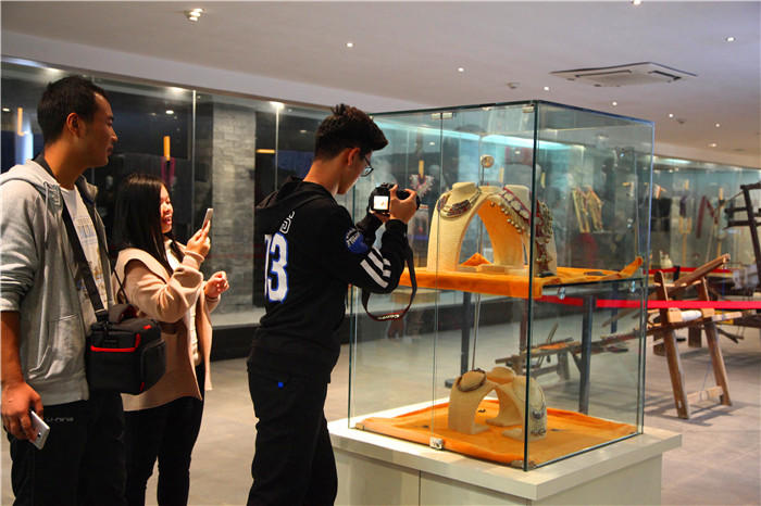 作为2017年江西省社科普及宣传周暨学术活动周第30个项目,本次畲族服饰科普宣传展展出了百余件畲族服装、头饰、刺绣、彩带、布鞋、围腰、布包和银饰品,以及以畲族元素创新设计的新时代凤凰装等。现场陈设了百余块畲族服饰文化知识科普展板和畲族服饰风情摄影图片,也吸引了众多师生深入探究和多方位追溯。特别是来自浙江景宁畲族自治县老艺人表演的畲族彩带编织和学唱畲歌畲语,这项非物质文化遗产技艺更是吸引了大量师生驻足观看,拍照合影,刷屏点赞不停。当晚博物馆放映了畲族微电影《山哈女友》和大型畲族服饰风情舞蹈诗《千年山哈》实况录像,让江服师生进一步了解了畲族人民的传师、耕山、盘歌、礼嫁等传统文化习俗。