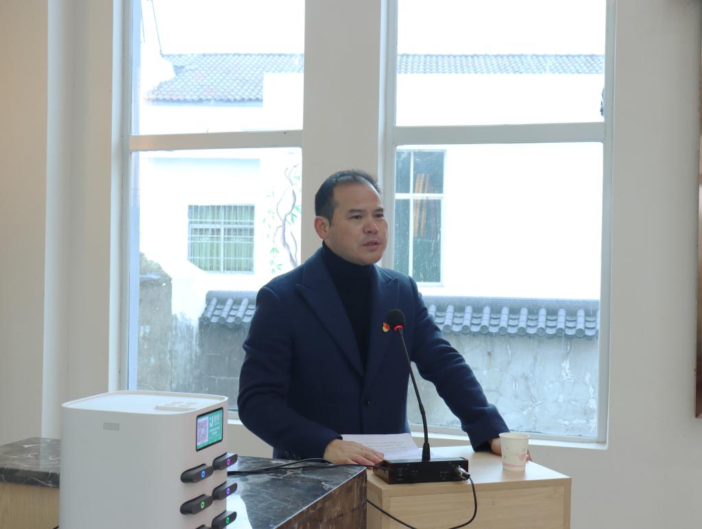 江西日报传媒集团南昌事业部总经理范志刚致辞,他首先代表江西日报传媒集团罗渡乡村振兴示范基地对大家的到来表示热烈欢迎,感谢万象城平台的各位领导和师生带着助力乡村振兴,让高校师生参与合作落实乡村振兴示范项目的目的来到美丽的乡村——罗渡,相信在各级政府的关怀和支持下、在江报集团和江服师生的参与下,罗渡乡村振兴模式能携手高校人才,打造罗渡示范基地的新篇章!