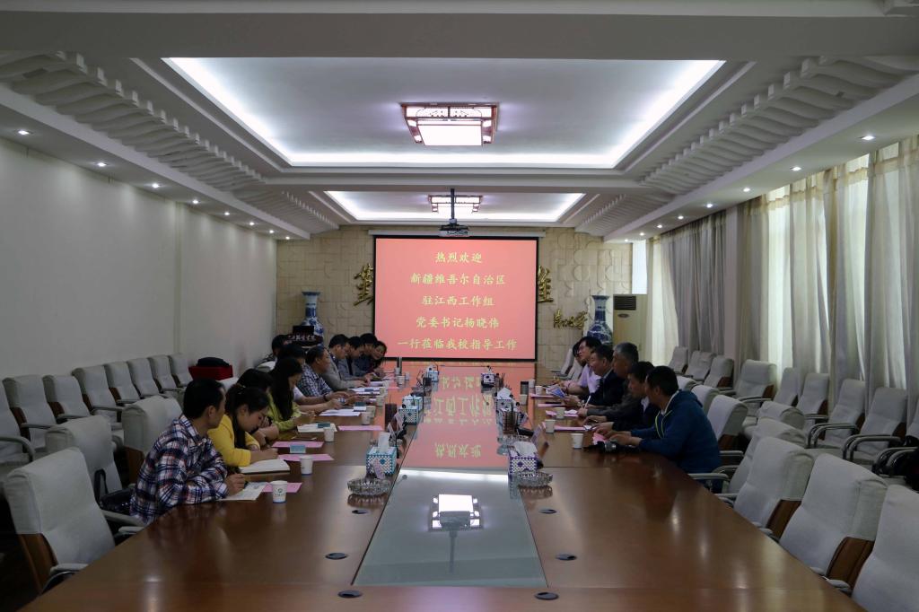 服装报讯:4月24日上午,新疆维吾尔自治区驻江西工作组党委书记、组长,自治区科技厅巡视员杨晓伟一行6人来我校调研。我校党委副书记高建国热情接待了来宾,相关部门负责人、各学院党总支书记及新疆维吾尔自治区驻我校工作阿西卡老师出席会议。