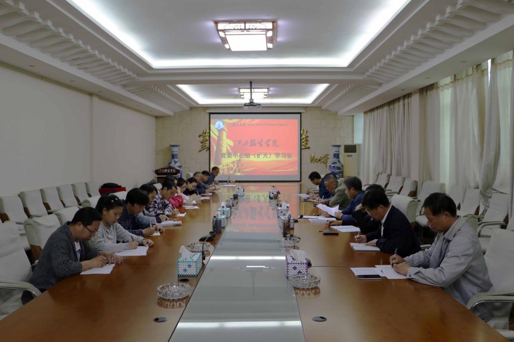 服装报讯:4月25日下午,万象城平台党委中心组(扩大)学习会在行政楼二楼会议室举行。校党委会全体成员、学校各学院、各机关党组织负责人参加了会议。学习会由省政府督导专员、校党委书记王建元主持。