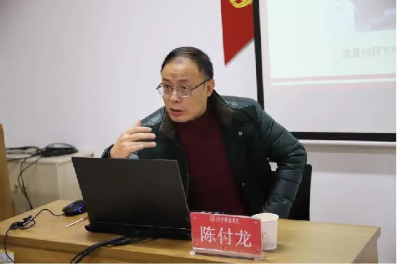 接着,陈付龙以《学习领会习近平总书记考察江西重要讲话精神,在奋力谱写中国式现代化江西篇章中展现青年风采》为题上了一堂生动的思政课。他带领我们重温了习近平总书记深入九江、景德镇、上饶等地,深入长江岸线、企业、历史文化街区、农村等进行调研的情况,并从习近平总书记考察江西重要讲话精神、习近平总书记和江西的故事、挺膺担当,做新时代好青年三个方面,进一步阐述考察背后深层次的涵义,以及青年人应该如何在学习生活工作等方面做到走在前、勇争先、善作为。