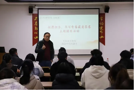 新闻中心讯(党委组织部供稿)为深入学习贯彻习近平总书记考察江西重要讲话精神,鼓励广大青年在大学中锚定奋斗目标,勇立时代潮头,积极投身国家发展事业,在学习实践中主动挺膺担当,开创未来。12月28日下午,校党委书记、督导专员陈付龙在艺术院党员活动室参加所联系班级22视传本科1班的主题团日活动,并为学生上了一堂思政课,艺术设计学院党团干部和22视传本科1班的全体同学参加了活动,并聆听思政课。