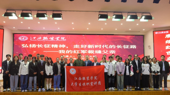 为铭记红军丰功伟绩,弘扬伟大长征精神,进一步做好师生思想教育工作,引导全校师生不忘初心、继续前进,走好新时代的长征路,10月22日下午,学校邀请到1934年随中央红军开始长征,时任缝纫班班长,背着德国飞人牌手摇缝纫机走完了二万五千里长征路,并在陕北为毛主席做了一套棉衣的老红军葛接调的后代,解放军退役大校,于都长征源宣讲团团长葛江洋来校,为师生带来了一场题为《弘扬长征精神,走好新时代的长征路——我的红军裁缝父亲》的主题报告会。校党委副书记唐新强,相关职能部门负责人,各学院党委(总支)书记以及辅导员和学生代表近500人聆听了报告会。党委委员、宣传部部长沈新建主持报告会。