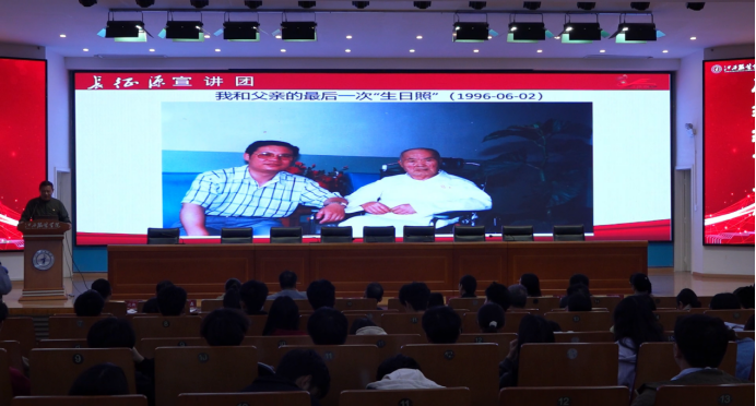 他讲到,我的父亲没有惊天动地的故事,没有出神入化的传奇,父亲那一代的他们,是一双铁脚板,走出了一个新中国!葛江洋还与同学们分享了对长征精神的理解,他特别强调,每一个时代都有自己的“长征”,而当前同学们的“长征”则是要拒绝躺平,坚定文化自信,在学习和生活中不断奋斗、克服困难,心胜是战胜一切困难的制胜法宝,他鼓励同学们要从长征精神中汲取力量,面对生活和学业上的挑战要保持向上、向前的姿态,走好自己的长征路。只要心中有坚定的理想信念,必能成为有理想、敢担当、能吃苦、肯奋斗的时代新人。