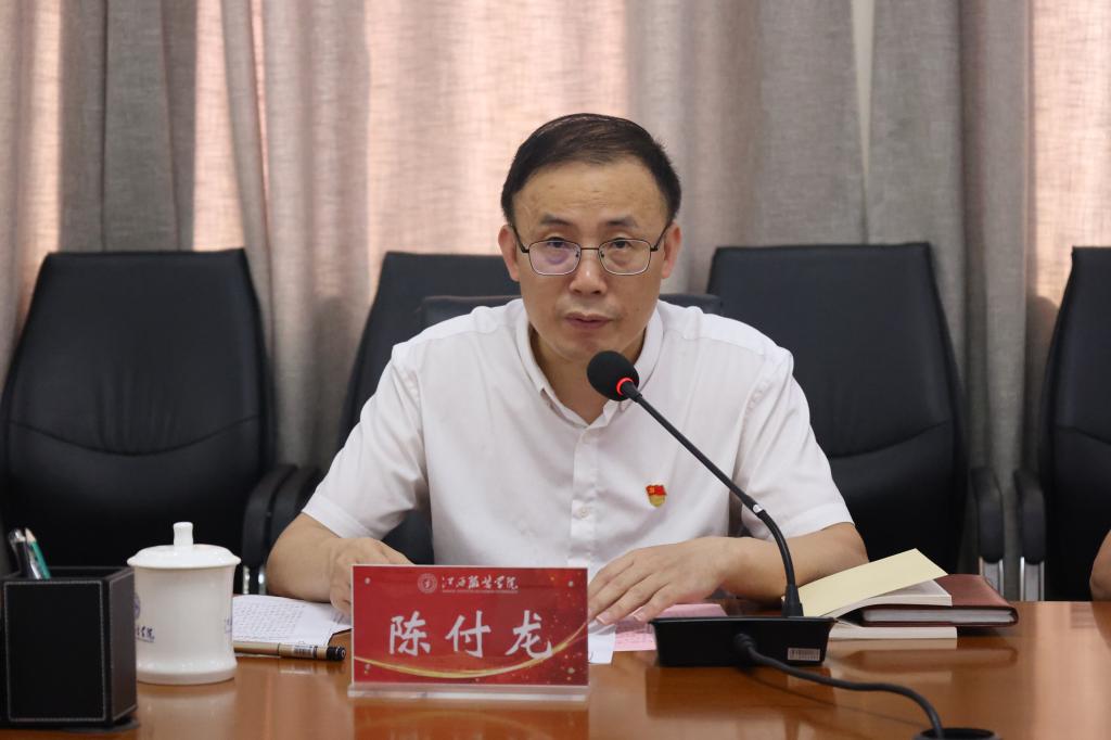 新闻中心讯(文/龙瑞行 图/万强)6月30日下午,校党委理论学习中心组(扩大)第十次学习会在行政楼二楼会议室召开,传达学习贯彻习近平新时代中国特色社会主义思想主题教育上级有关会议及文件精神,习近平总书记关于加强和改进民族工作的重要思想、关于宗教工作的重要论述,习近平总书记同团中央新一届领导班子成员集体谈话时发表的重要讲话精神;传达学习省委书记尹弘在省委理论学习中心组集体学习时的讲话精神;原文学习《论党的自我革命--全面从严治党是一场自我革命》《习近平关于调查研究论述摘编》章节内容。校党委书记陈付龙主持会议并讲话,校党委理论学习中心组成员,各二级学院党委(党总支)书记、各机关支部书记,相关职能部门负责人参加会议。