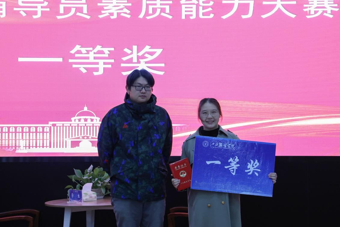 培根铸魂,启智润心,为人师表,敬业爱生。辅导员素质能力大赛是我校加强辅导员队伍建设的重要平台,旨在引导辅导员回归立德树人本真、回归辅导员学生教育管理工作,聚焦主责主业 ,自觉履职尽责,督促辅导员以赛代训、以训促学、以学促建的重要活动。近年来,学校多措并举加强辅导员队伍建设,通过举办校内辅导员素质能力大赛、辅导员沙龙、优秀论文征集和案例比赛、辅导员工作室建设等一系列举措,推动辅导员工作交流,提升辅导员专业素养和综合能力。今后,学工部将继续突出辅导员队伍建设,坚持快乐工作、健康生活、温暖相处,助推辅导员队伍职业化、专业化、专家化发展,推动我校学生工作再上新台阶,共同唱响育人最强音,锻造育人好本领,做足育人大文章!