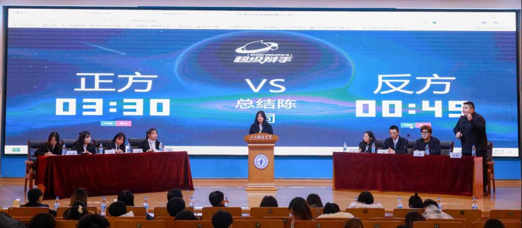 本次比赛辩手们围绕“舆论反转是否为社会理性的体现”进行了激烈讨论。正反双方辩论队队员登场见礼,正反双方辩手进行自我介绍后,比赛正式开始。他们在立论陈词、破题立论和自由攻辩等环节中都展现出其敏捷的思维和出色的反应能力,双方你来我往,唇枪舌战,通过大量数据和实例佐证,从多个方面阐述己方观点。现场高潮迭起,掌声不断。