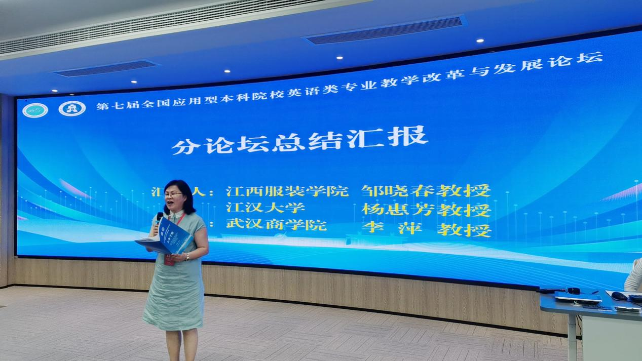 新闻中心讯(人文学院 李俊兰撰稿)5月11-12日,第七届全国应用型本科院校英语类专业教学改革与发展论坛在武汉商学院成功召开。我校薛家宝校长以全国应用型本科院校英语类专业教学联盟的理事长的身份参加并作主旨报告。人文学院院长邹晓春、科技产业处副处长曾剑平及商务英语专业教师吴丽娜、李俊兰、万琦睿等随同参会。
