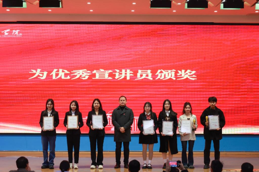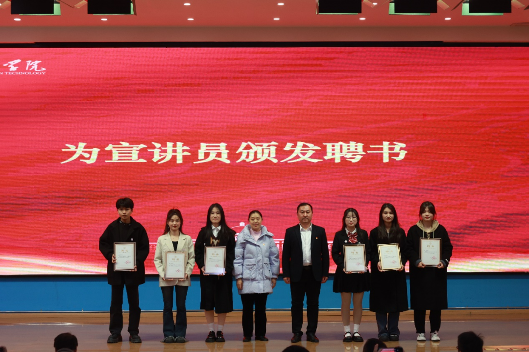 校党委委员、组织部部长陈翠娥宣读了《关于聘请高仪等同学为江服大学生宣讲团第三届成员的通知》和《关于表彰2023年度优秀宣讲员的决定》。