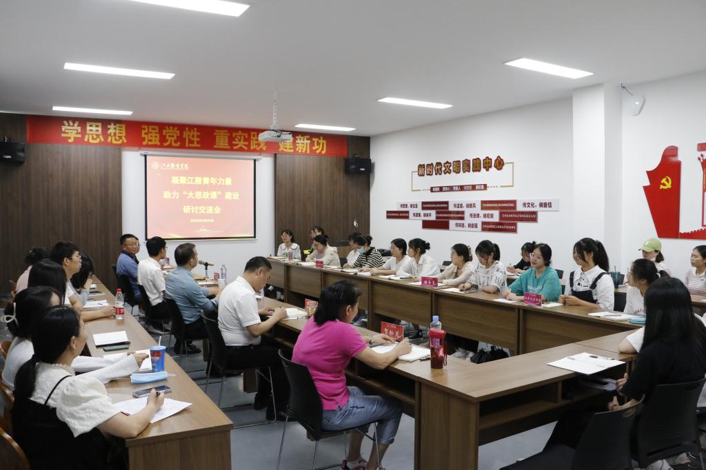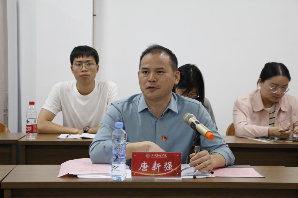 新闻中心讯(文/龙瑞行 图/万强)为深入贯彻落实习近平总书记关于“大思政课”的重要指示批示和在中国人民大学考察时的重要讲话精神,以主题教育为契机,扎实开展好日常思政教育活动,推动“大思政课”建设工作走深走实。2023年5月31日下午,万象城平台在新时代文明实践中心召开“凝聚江服青年力量 助力‘大思政课’建设”研讨交流会,邀请了江西省青年讲师团讲师、江西师范大学马克思主义学院院务委员、教授、硕士生导师王钰鑫博士分享交流并作主题示范宣讲,校党委副书记唐新强出席并讲话,党委宣传部、马克思主义学院党政领导班子成员、思政课教师、各二级学院辅导员、大学生宣讲团成员参加会议。
