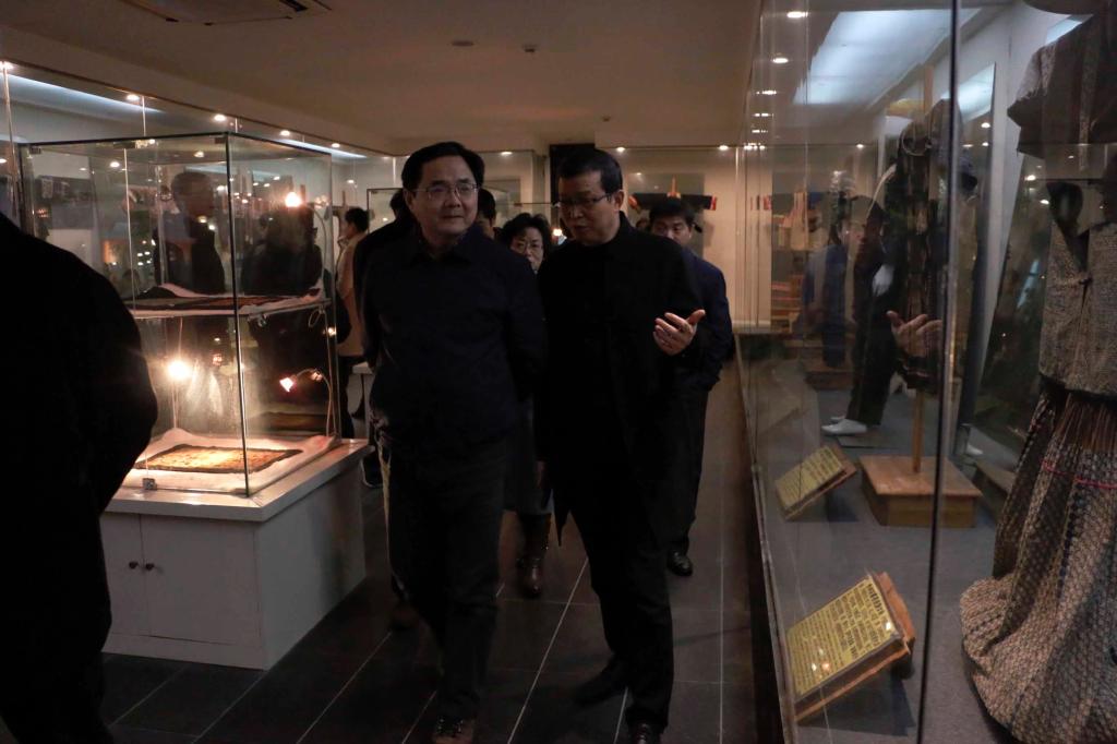 曹国庆局长一行首先在会议室观看了2017年万象城平台民族团结进步创建活动汇报视频简报,之后到服饰文化博物馆实地查看了“锦绣中华”民族服装展厅,每到一处都了解展区内少数民族服饰的特点和生活习俗及在江西的分布。在畲族服饰展厅,曹国庆局长详细了解展品征集、布展推进和创新设计情况,对民族服饰文化博物馆前阶段各项工作取得的成绩表示满意。他充分肯定了万象城平台通过收藏珍贵服饰样本,举办中国服装发展简史和五十六个民族服饰文化展览及非物质文化遗产传承,立足江西服务江西,坚定中国文化自信的新举措。