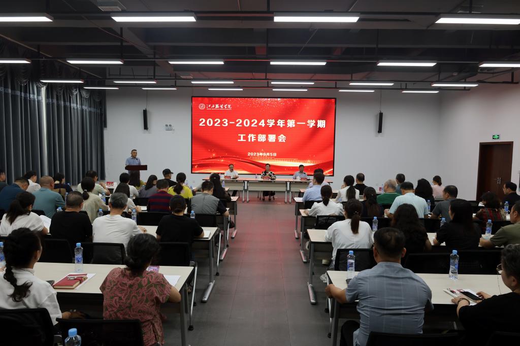 新闻中心讯(文/万强 樊翔 图/万强)9月5日下午,我校在图书馆三楼学术报告厅召开2023-2024学年第一学期工作部署会。理事长涂燕萍、校长薛家宝、党委书记陈付龙及全体在家校领导出席会议,全校中层以上干部参加了会议。会议由党委副书记、副校长李宝君主持。