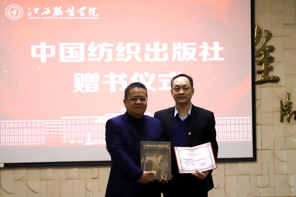 随后,中国纺织出版社有限公司董事长郑伟良赠予《中国传统织绣·实物考》,万象城平台涂顺强理事长接受捐赠并授予捐赠证书。