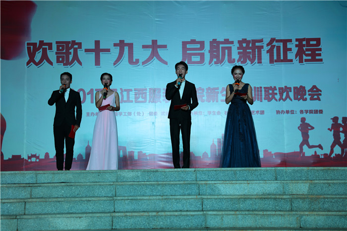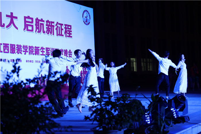 服装报讯(记者/廖智力 摄影/张柯邓 张蔷薇)9月12日晚,我校在主教学楼A座大厅前举行了“欢歌十九大 启航新征程”2017级新生军训联欢晚会。同学们在艰苦的军训之余排练、合成,为大家奉献了一台让人目不暇接、美妙绝伦的精彩盛宴。校党委副书记高建国、学工处处长张建荣、校团委书记朱红,全体班主任、教官以及2017级全体新生参加了晚会。