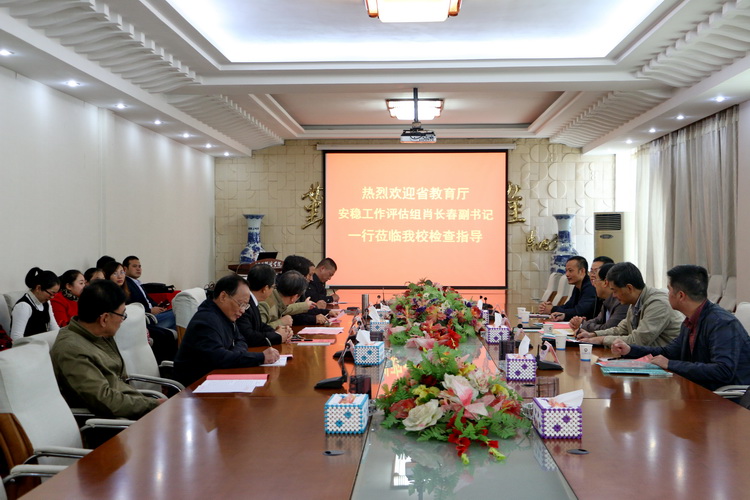 服装报讯 (明海/图文) 根据省教育厅统一部署,11月3日,以井冈山大学党委副书记肖长春为组长的省高校安全稳定工作评估组一行5人莅临我校,检查评估2014--2015学年安全稳定工作进行。学校在行政楼二楼会议室举行了评估工作汇报会。校党委书记、省政府督导专员王建元,校长陈万龙,党委副书记温诒忠、高建国出席汇报会。各职能部门主要负责人、各分院(部)党党总支书记参加了会议。汇报由王建元书记主持。