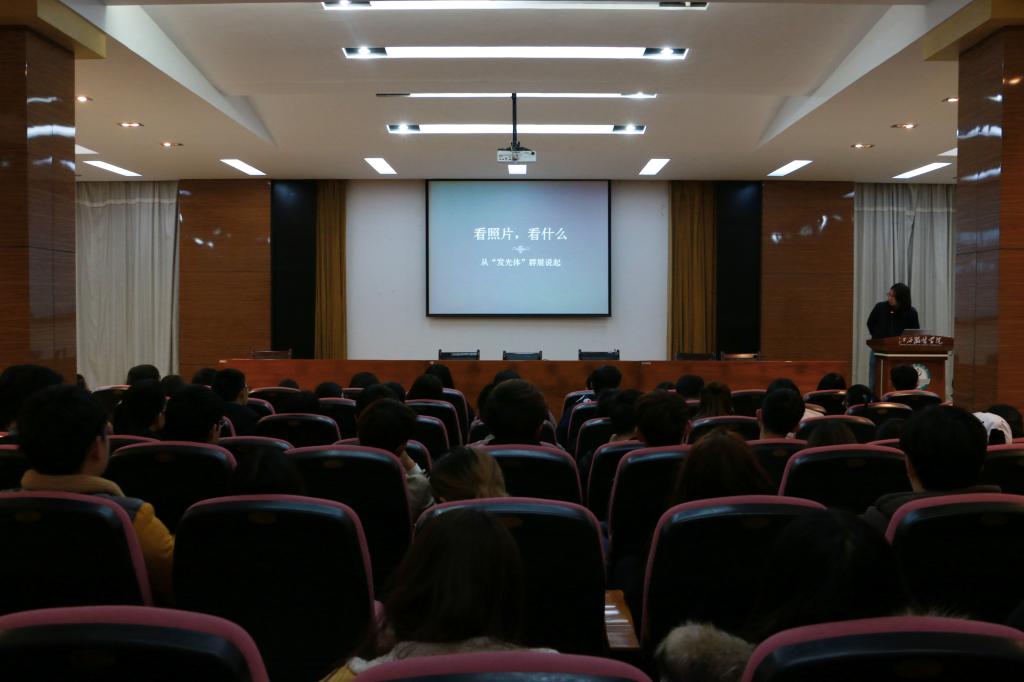 服装报讯(记者/洪丽奇 廖智力) 3月17日晚,北京电影学院摄影学院硕士研究生、青年摄影师何博在行政楼一楼报告厅为我校摄影爱好者带来一场“看照片,看什么——从‘发光体’群展说起”的专题讲座。