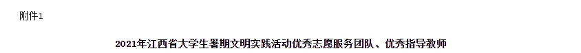 (新闻中心讯)近日,江西省教育厅、省文明办发布《关于公布2021年全省高校大学生暑期文明实践志愿行动评选结果的通知》,我校三支队伍“推普助力乡村振兴,聚力共筑中国梦”、“党史学习践初心志愿服务暖人心”、“‘讲述百年党史,筑梦青春之旅’志愿服务队”获评“优秀志愿服务团队”荣誉称号,龚琦、况亚萍、龙瑞行三位教师获评优秀指导教师荣誉称号。