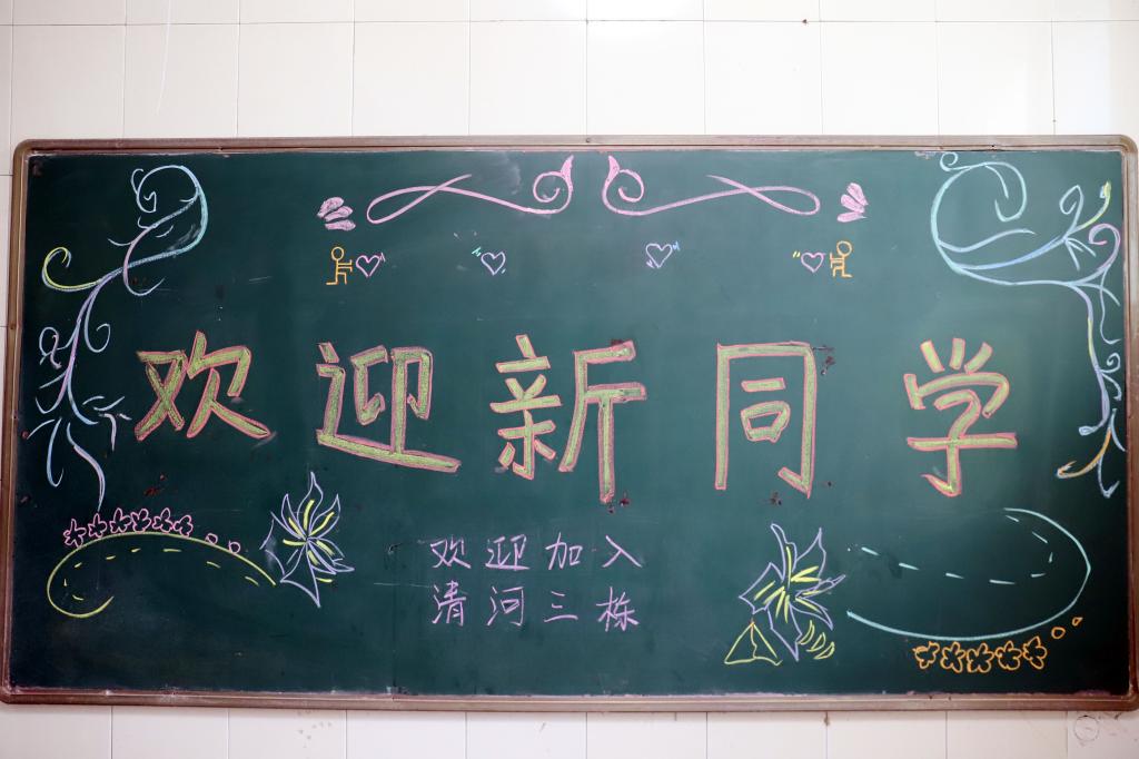 新生宿舍楼栋的欢迎牌