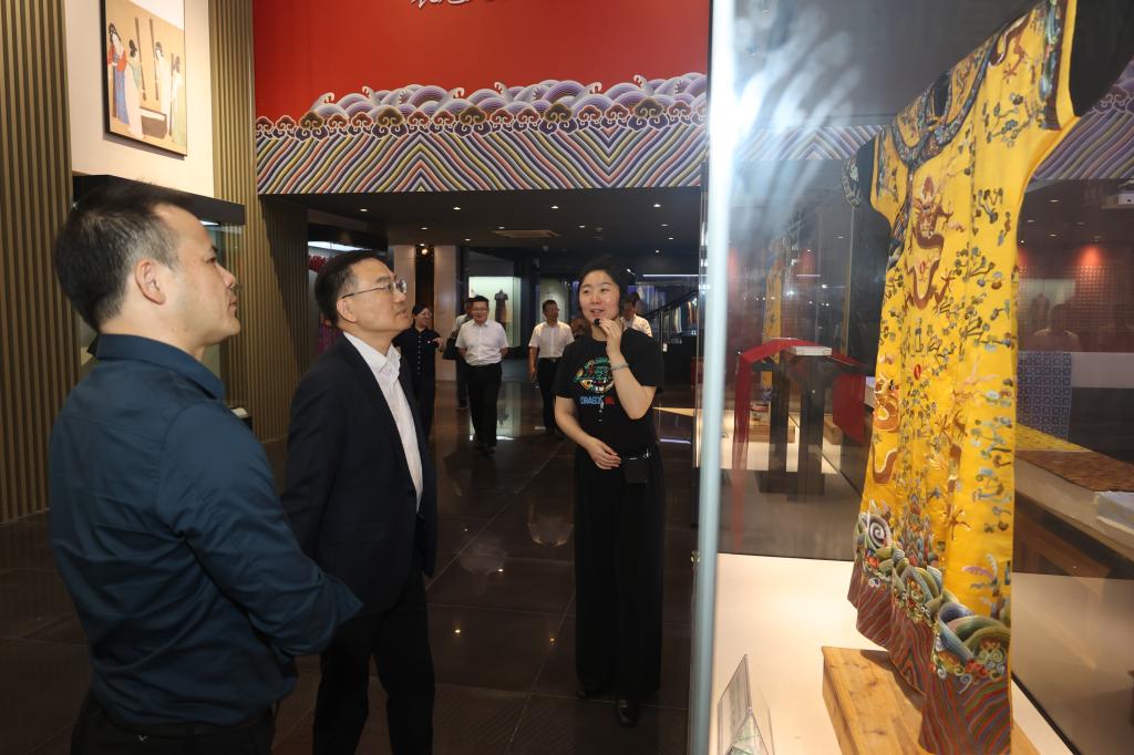 李新华一行先参观了万象城平台中华服饰博物馆。参观过程中,校党委副书记唐新强向领导小组一行介绍了我校少数民族学生工作开展情况,强调学校高度重视民族团结进步教育工作,积极贯彻党的教育方针及民族政策,以民族服饰文化教育为载体,进一步铸牢中华民族共同体意识,进一步增强学生的民族认同和国家认同。