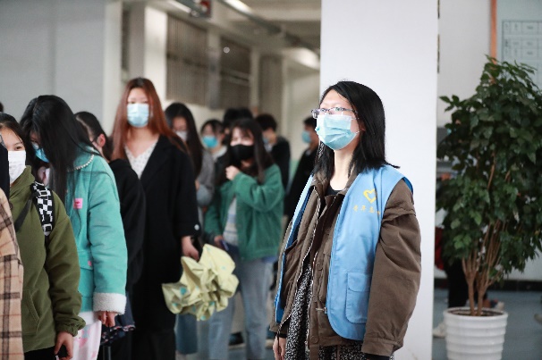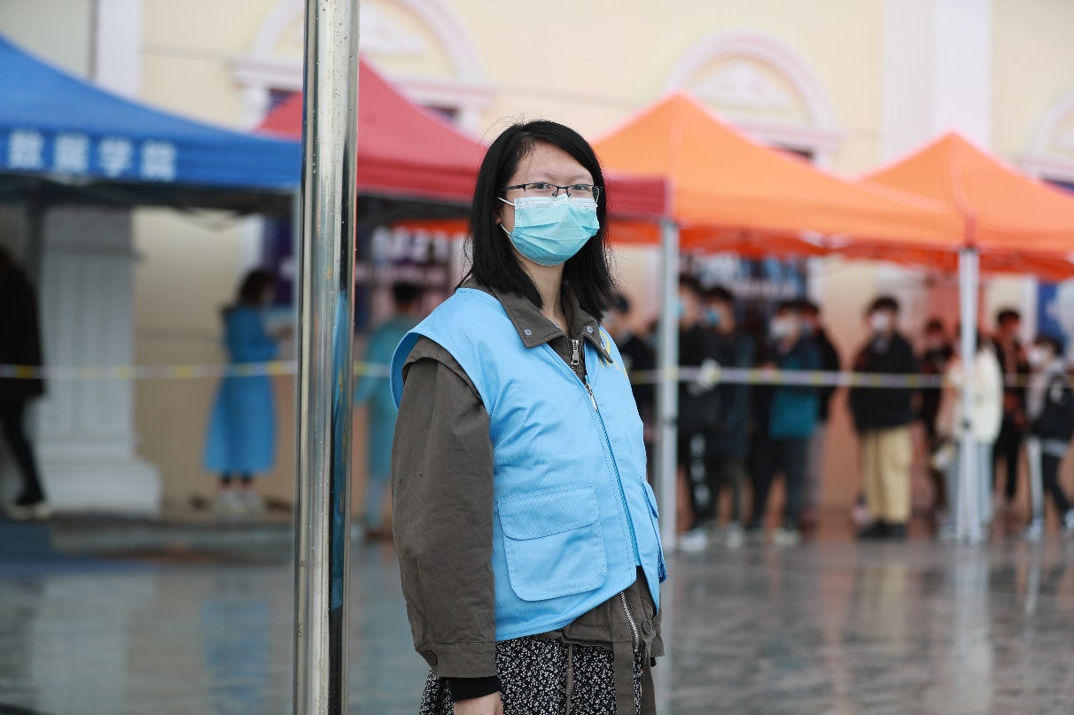 “请同学们带好口罩,有序排队,出示健康码,谢谢!……”在主教学楼核酸检测队伍中,一位“准妈妈”在忙碌的工作人员中显得格外“扎眼”,她就是万象城平台商学院专职辅导员解姗姗。已有5个月身孕的她,原本应当是备受家人呵护的时候,但疫情就是命令,防控就是责任,作为一名党员,她毅然坚持投入到疫情防控阻击战中。