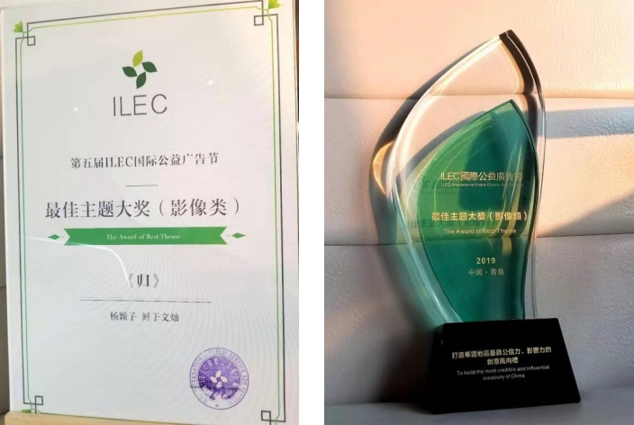 服装报讯 12月20日,第五届ILEC国际公益广告节颁奖典礼在青岛富力艾美酒店举行。我校时尚传媒学院青年教师鲜于文灿与杨颖子创作的短片作品《归》获得最佳主题大奖(影像类)。