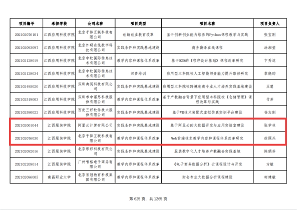 (新闻中心讯)近期获悉教育部高等教育司公布的2021年第二批产学协同育人立项名单,我校大数据学院徐照兴教授负责的教学内容和课程体系改革项目《Web前端技术教学内容和课程体系改革研究》,张学林副教授负责的实践条件和实践基地建设项目《基于阿里云的大数据开发与应用实验室建设》获批教育部2021年第二批产学协同育人项目立项。