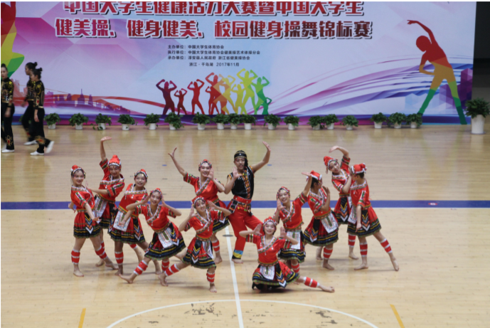 本次比赛由中国大学生体育协会主办,吸引了全国各地172所高校,2000余名运动员,教练员参加,比赛共设健美操、健身健美、校园健身操等三个大项,24个组别303个项目,是一场高水平高水准的全国体育竞赛。在比赛中我校瑜伽代表队和健美操代表队赛出了江服学子的风采,展现了我校大学生的良好精神风貌,为学校赢得了荣誉。
