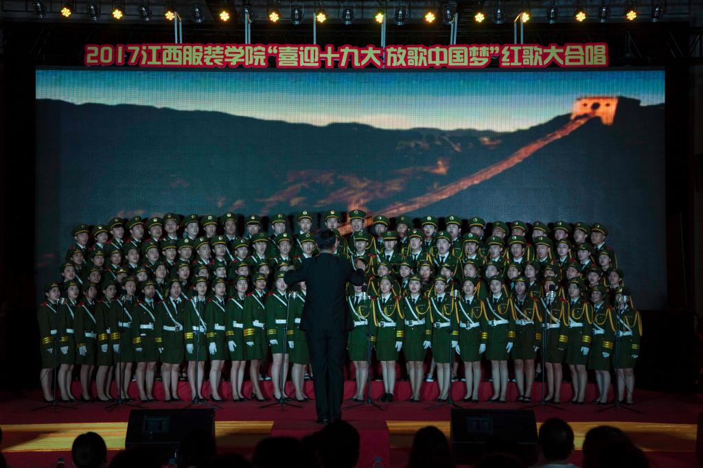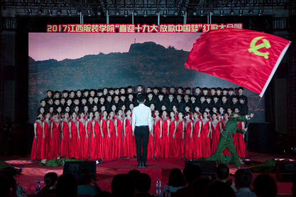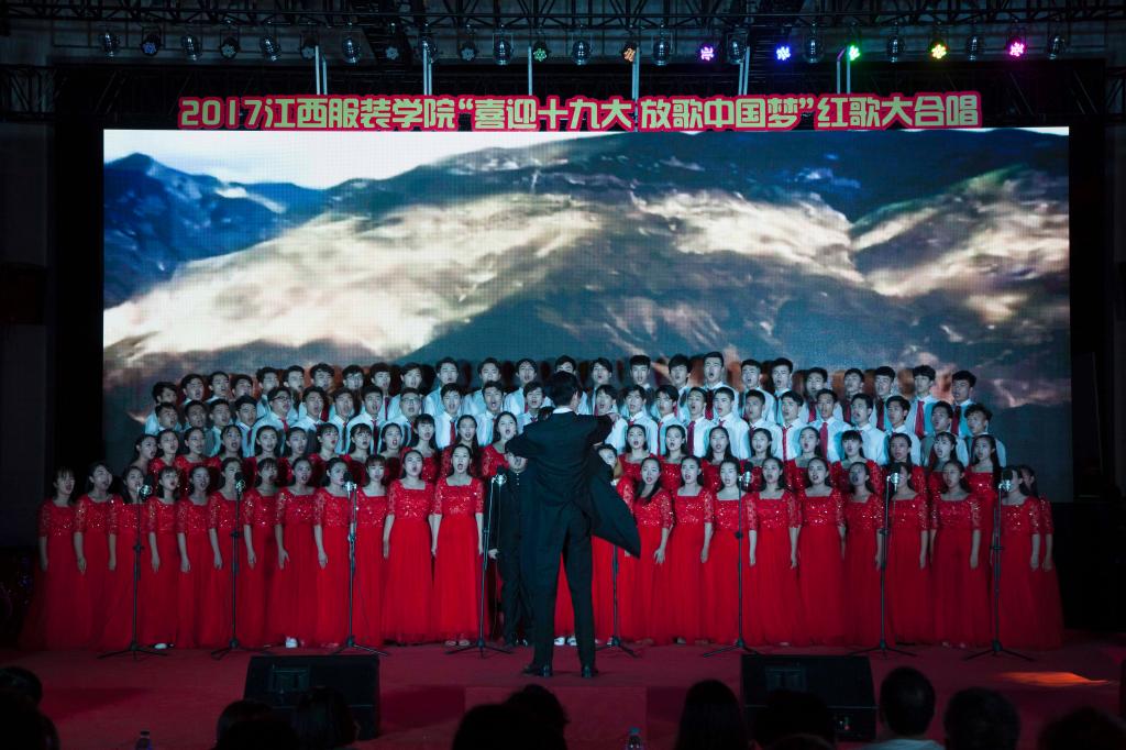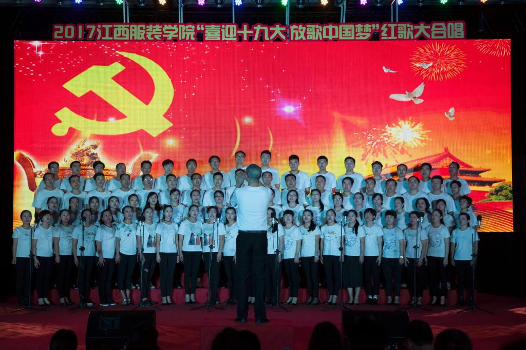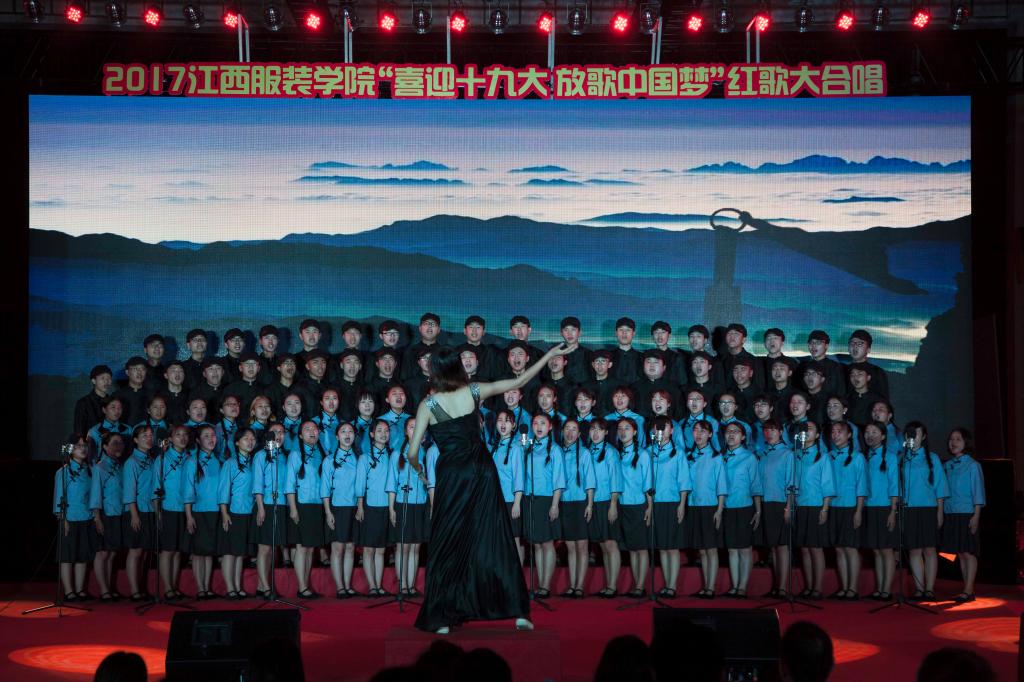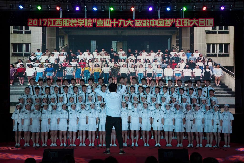 服装报讯(记者/廖智力 林慧萍 摄影/余婷 张蔷薇 鲍甜甜)飞扬的歌声,吟唱难忘的岁月。熟悉的旋律,演绎时代的乐章。5月23日下午,我校“喜迎十九大 放歌中国梦”红歌大合唱比赛在霓裳宫举行。校长陈万龙、副校长温容祯、党委副书记徐红先、副校长杨涛、党委副书记高建国、副校长胡放、总督学杨汉东亲临现场欣赏了这场精彩的盛典。