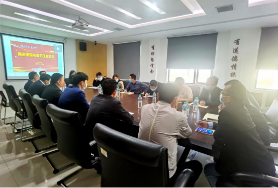 新闻中心讯 近日,我校召开新增商务英语本科专业招生推介会,就我校商务英语本科专业的人才培养模式、招生计划以及如何推进招生工作、扩大专业影响力进行了分析和研讨。招生办主任王敏、宣传部部长沈新建、人文学院院长邹晓春、副院长付凌云、院长助理陈家华、党总支副书记马忠秋出席了会议,招生办副主任张文强、外语教研室主任吴丽娜以及部分招生办老师代表参加了会议。会议在人文学院会议室举行,人文学院党总支副书记马忠秋主持会议。