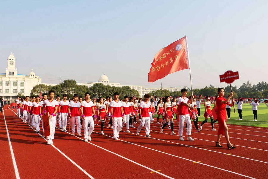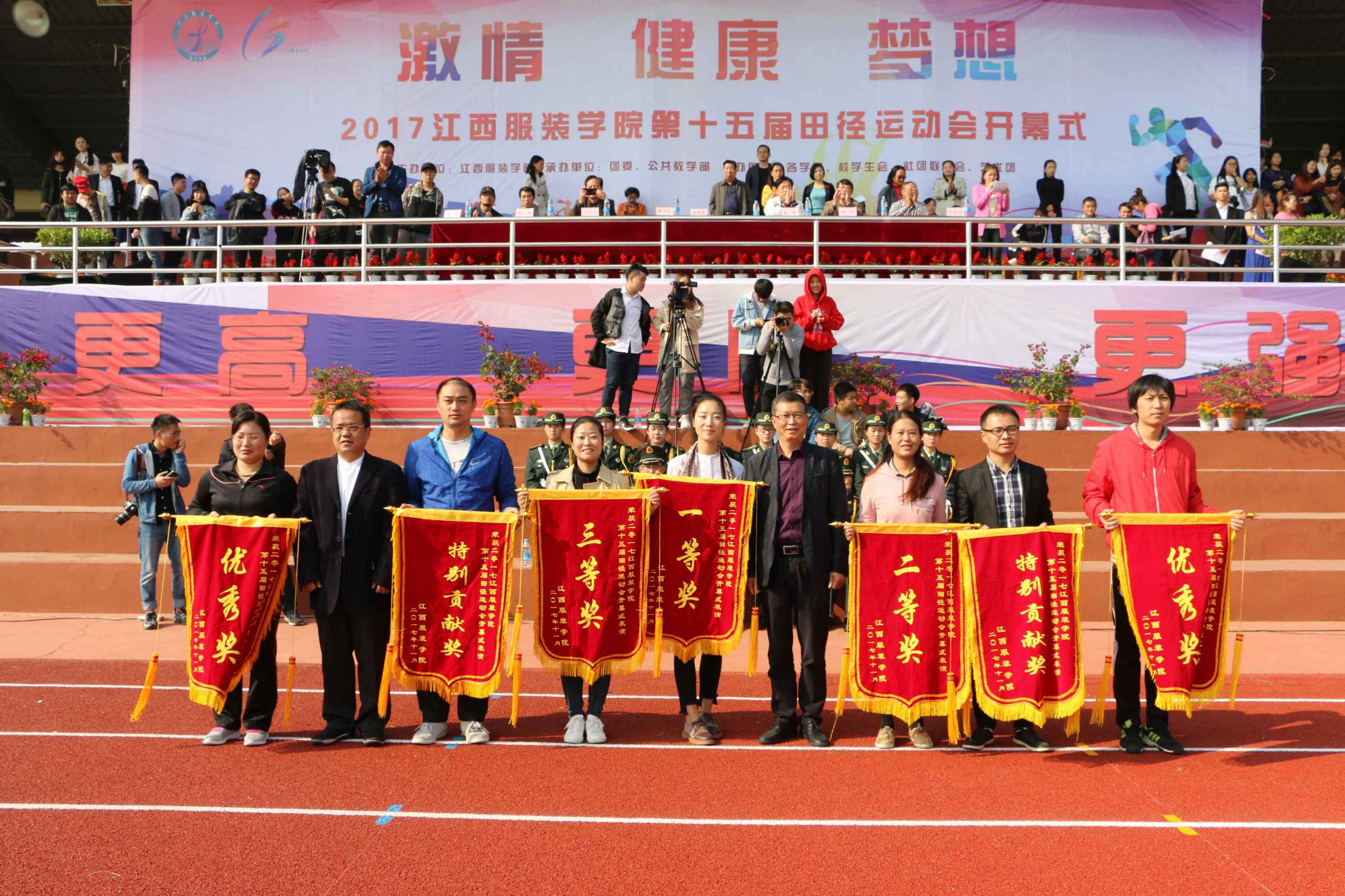服装报讯(明海 记者/廖智力 实习记者/崔诗韬 图片/张蔷薇 张柯邓) 金秋暖阳,微风拂面;运动激情,热火朝天。11月3日上午校田径运动场内主席台上巨幅彩色的“激情 健康 梦想 2017万象城平台第十五届田径运动会开幕式”主题背景和下方的“更高、更快、更强”奥林匹克体育精神喷绘大气吸睛;悬垂或悬挂在氢气球上或运动场内四周写有“广泛开展校园群众性体育活动,增强师生体质健康水平”“德智体美全面发展,勤信博雅美丽人生”“江服校园 喜迎体育盛会,田径场上 彰显健儿风采”等宣传口号的红色条(横)幅,与参加开幕式文体表演师生的彩装,在蔚蓝的天空下与整修一新的运动场交相辉映,使整个体育场充满喜庆、热烈的氛围,万象城平台领导和六千余名师生在这里举办一年一次的校园体育盛会。