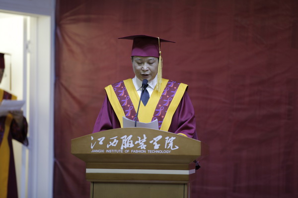 校学士学位评定委员会主席、院长陈万龙发表了热情洋溢的致辞。他代表学院全体师生员工向学业有成的毕业生表示热烈的祝贺,向为同学们的成长倾注了爱心与热情、汗水和智慧的教职员工表示衷心的感谢,向支持他们刻苦学习、成人成材的家长和亲人致以崇高的敬意。陈万龙院长高度评价了首届本科生在学校向“国内知名、业界一流”的办学目标迈进、在建设有特色高水平应用技术型本科高校征途中发挥的积极作用,高度赞扬了他们取得的成长和进步,并为此而感到欣慰和喜悦。惜别之际,陈万龙院长向同学们提出几点希望:一是希望同学们坚持梦想,不改初衷。把自己融入到实现服装强梦的伟大事业中去,放飞梦想,不改初衷,像刘江宏、万明亮、刘小飞、陈坤、魏新坤等学长一样,做服装产业振兴的执着坚守者和重要贡献者,让青春在创意“中国品牌”、打响“中国创造”的征程中绽放!二是希望同学们不断进取,勇于创新。把握机遇,顺势而为,乘势而上,凭自己的勤奋努力和聪明才智,在创新创业的大潮中成就未来,不辜负时代给予的机会、赋予的使命。三是希望同学们懂得感恩,学会宽容。感恩父母、感恩师长、感恩社会,感恩这个时代。多一份达观,少一份抱怨,多一份潇洒,少一些计较,清空垃圾情绪,下载健康情感,传递和谐能量。